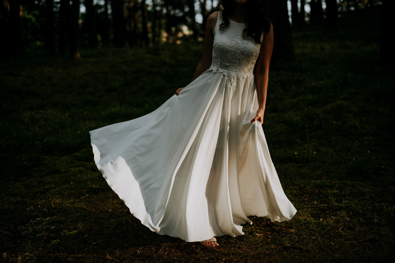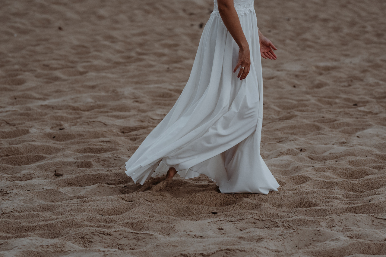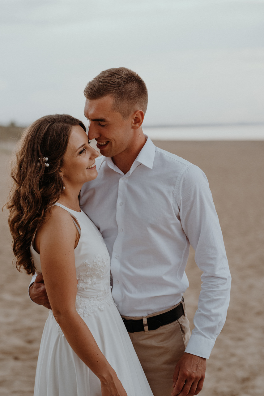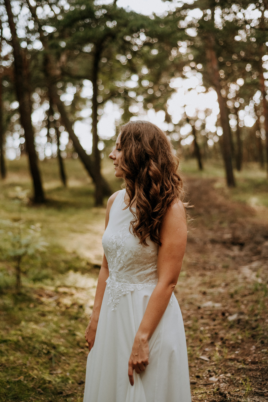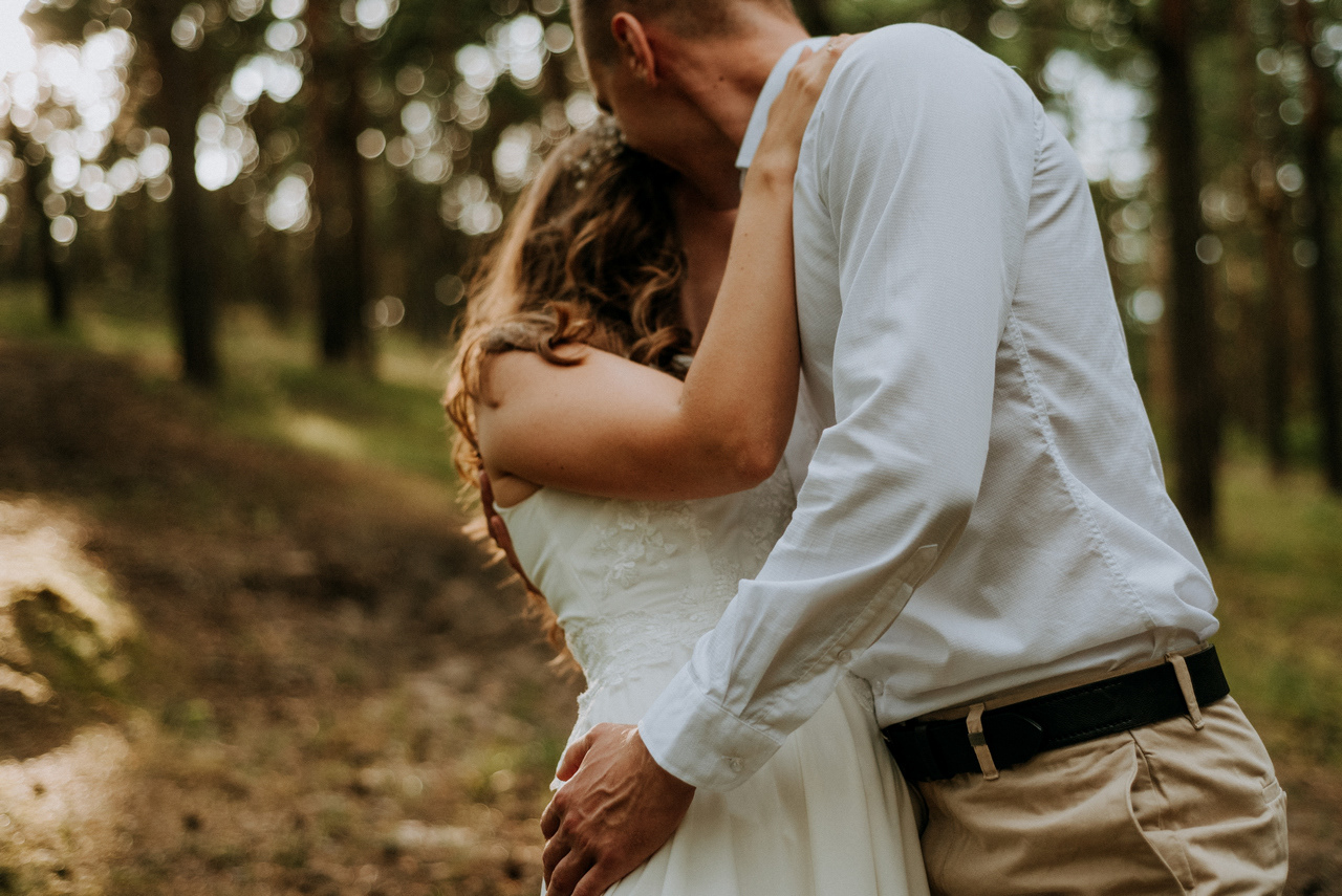 Plener poślubny na Wyspie Sobieszewskiej to super pomysł, jeśli nie możecie się zdecydować czy wolicie zrobić zdjęcia na plaży czy w lesie - mamy tu obie opcje! Takie spotkanie może być przemiłym spacerem wśród drzew, niczym w zaczarowanym lesie. W sam raz, żeby na zachód słońca dotrzeć na plażę. Nam nie dane było złote, ciepłe światło, bo trafił nam się na koniec sesji deszcz - ale zabawa i tak była przednia! Przez niespodziewaną zmianę pogody nie mogliśmy sobie zbytnio poszaleć dronem - ale hej to w końcu lipiec, który w Gdańsku nie bez powodu nazywany jest lipcopadem :) I tak czasem bywa... Po deszczu znów wyszło słońce, więc zatrzymaliśmy się spontanicznie jeszcze na chwilę .
