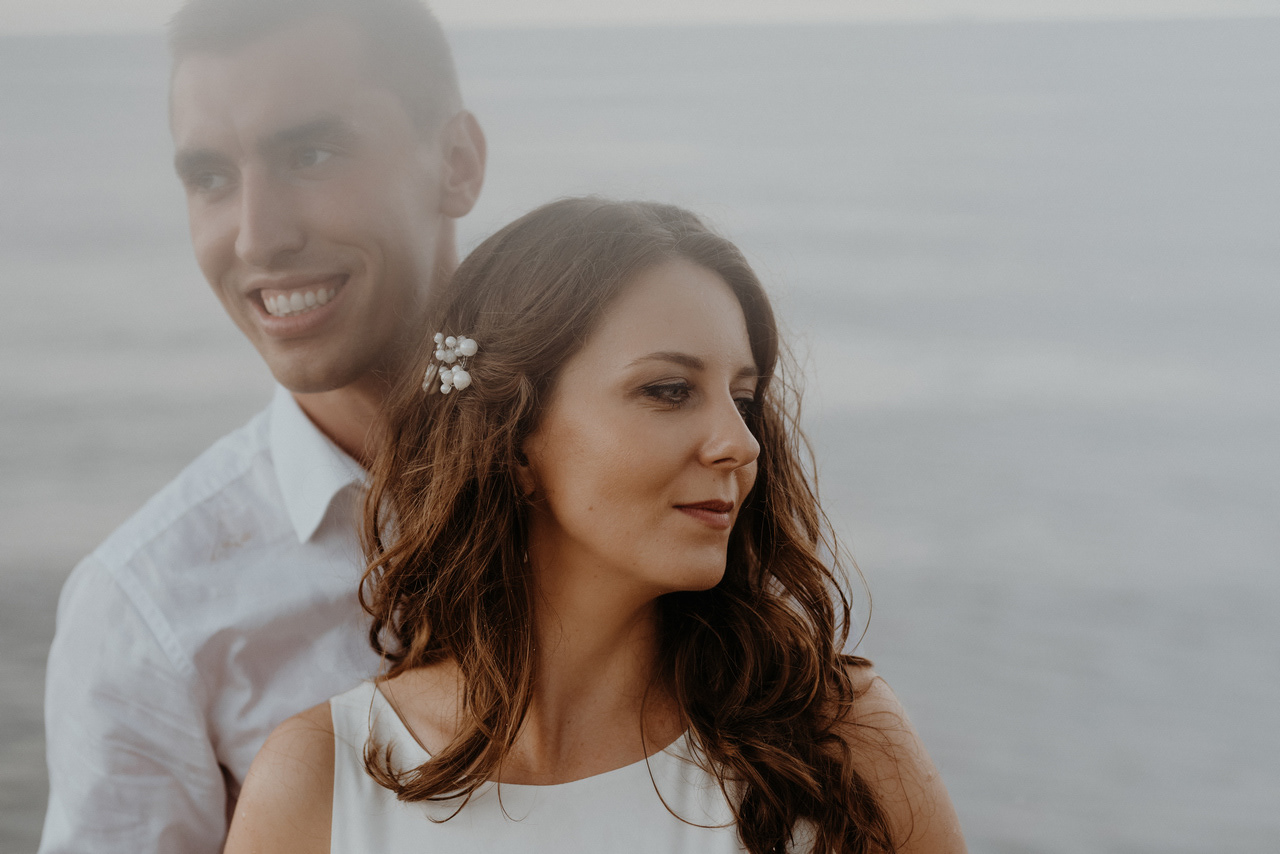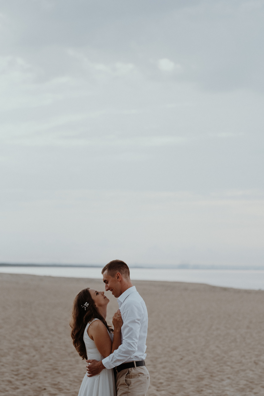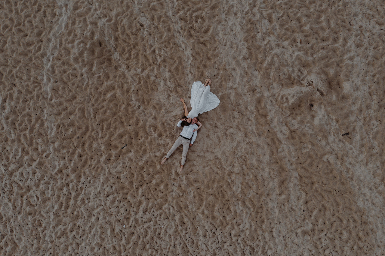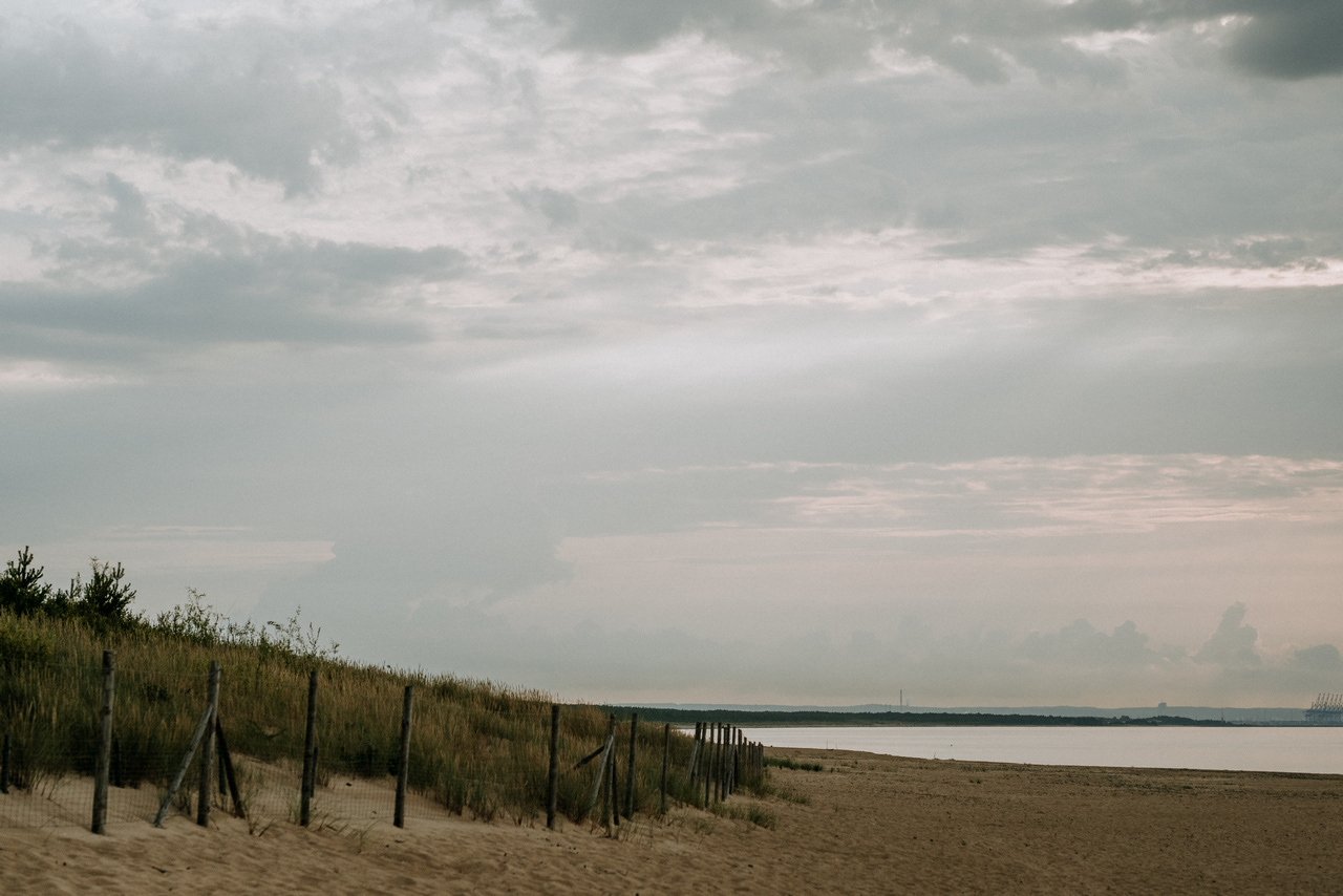 Plener poślubny na Wyspie Sobieszewskiej to super pomysł, jeśli nie możecie się zdecydować czy wolicie zrobić zdjęcia na plaży czy w lesie - mamy tu obie opcje! Takie spotkanie może być przemiłym spacerem wśród drzew, niczym w zaczarowanym lesie. W sam raz, żeby na zachód słońca dotrzeć na plażę. Nam nie dane było złote, ciepłe światło, bo trafił nam się na koniec sesji deszcz - ale zabawa i tak była przednia! Przez niespodziewaną zmianę pogody nie mogliśmy sobie zbytnio poszaleć dronem - ale hej to w końcu lipiec, który w Gdańsku nie bez powodu nazywany jest lipcopadem :) I tak czasem bywa... Po deszczu znów wyszło słońce, więc zatrzymaliśmy się spontanicznie jeszcze na chwilę .
